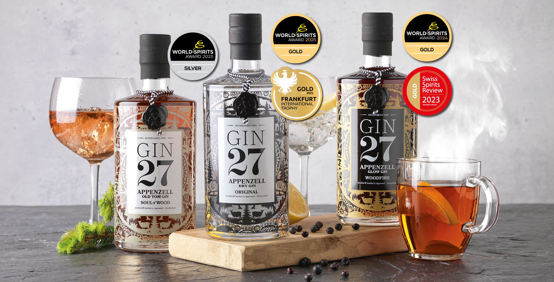 Tradition, Bodenständigkeit und eine über Generationen gepflegte Kräuterkompetenz: Dafür stehen das Appenzeller Qualitätsprodukt GIN 27 ORIGINAL und die beiden Varianten GIN 27 SOUL OF WOOD und GIN 27 WOODFIRE. Wie die beiden Firmengründer pflegen auch die Nachkommen die Brenntradition mit grosser Sorgfalt. Die GIN 27-Familie entspricht der Philosophie des Familienunternehmens: Qualität, Natur sowie eine enge Verbindung mit dem Appenzellerland.